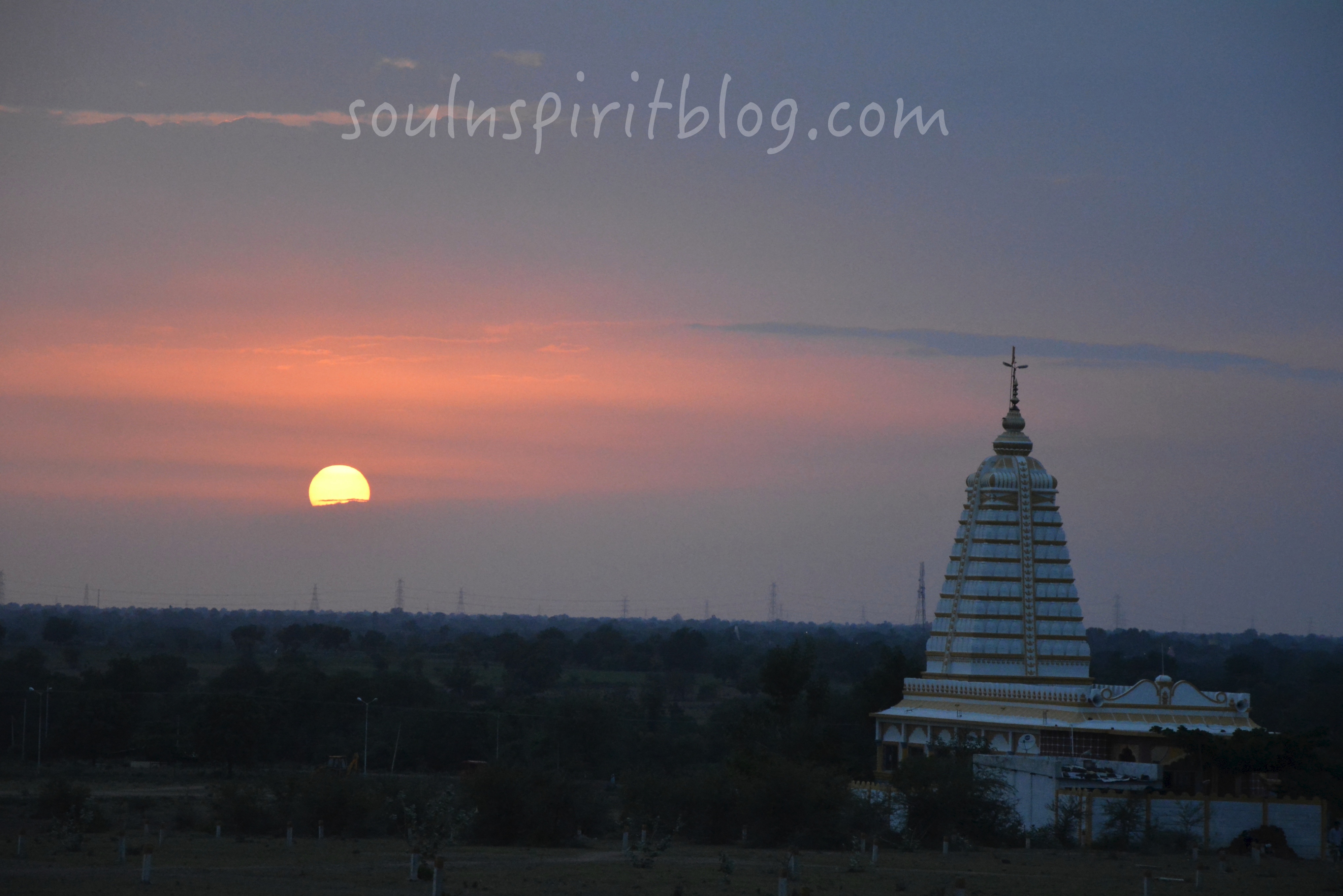 How surprising it is ! Yesterday I went to trek with my husband. We started climbing to reach our final destination, a temple built atop a hillock. The view was splendid. Soon it was time to say good bye to the sun.