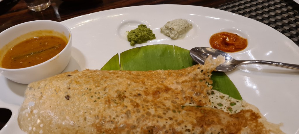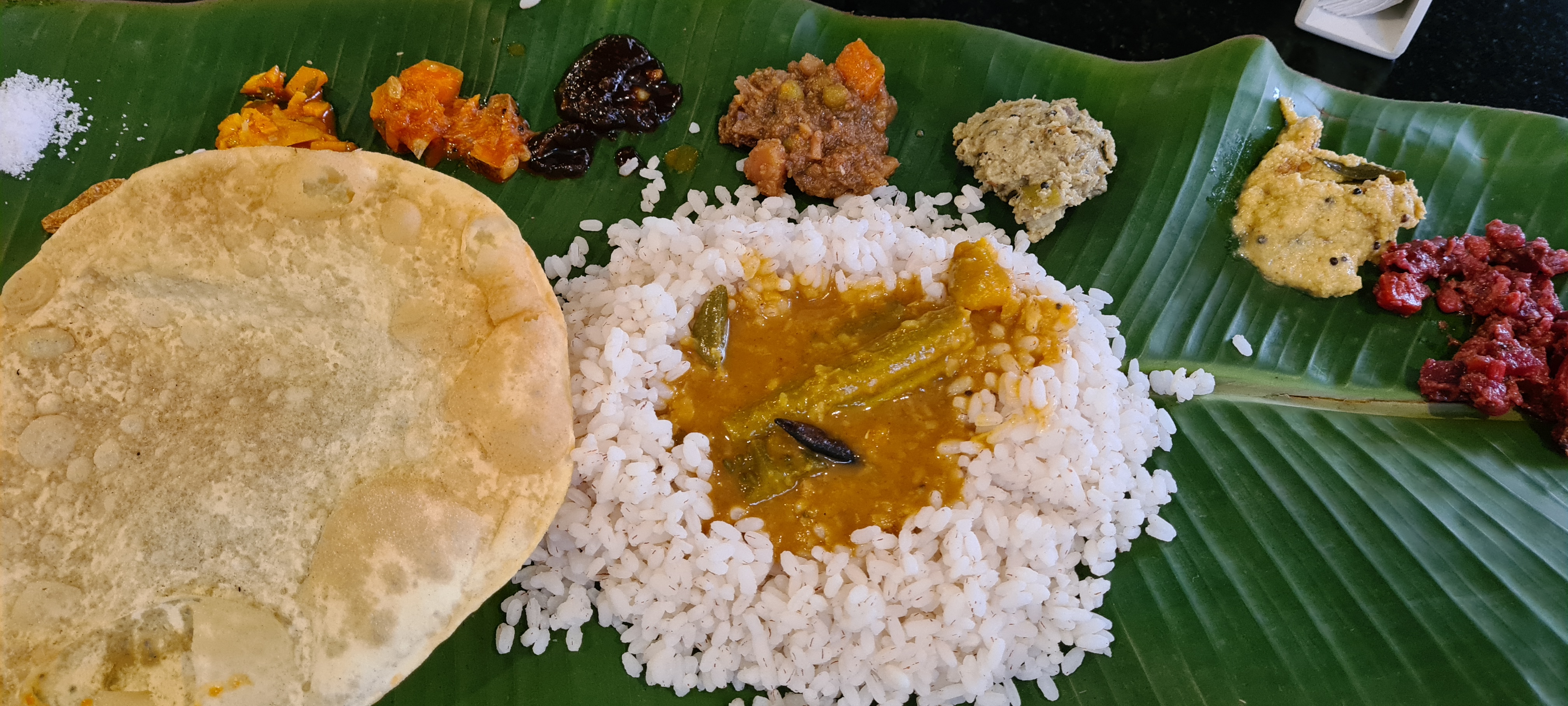One must try authentic south Indian meal which is basically a healthy combination of curries, vegetables /chicken/fish eaten with brown/white rice. All meals are centred around rice, the staple diet of south Indians. They don’t eat phulkas/rotis/chapiti (wheat flour flat bread) like north indians. On the contrary they have variations of rice dishes like appams, uttapams or dosas (pancakes made from a batter of rice and lentil flour). Poori is occasionally served in breakfast and lunch during festivities.