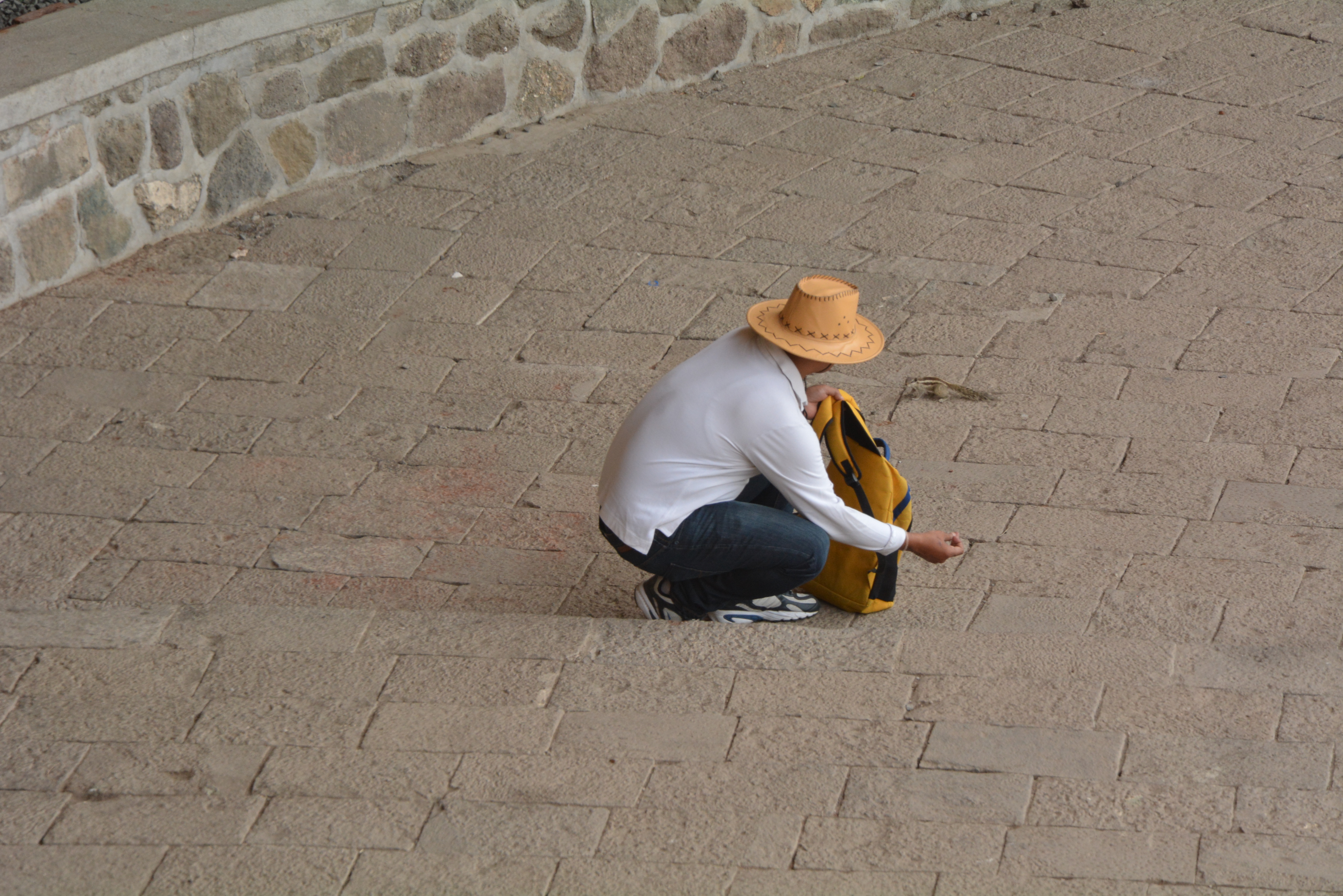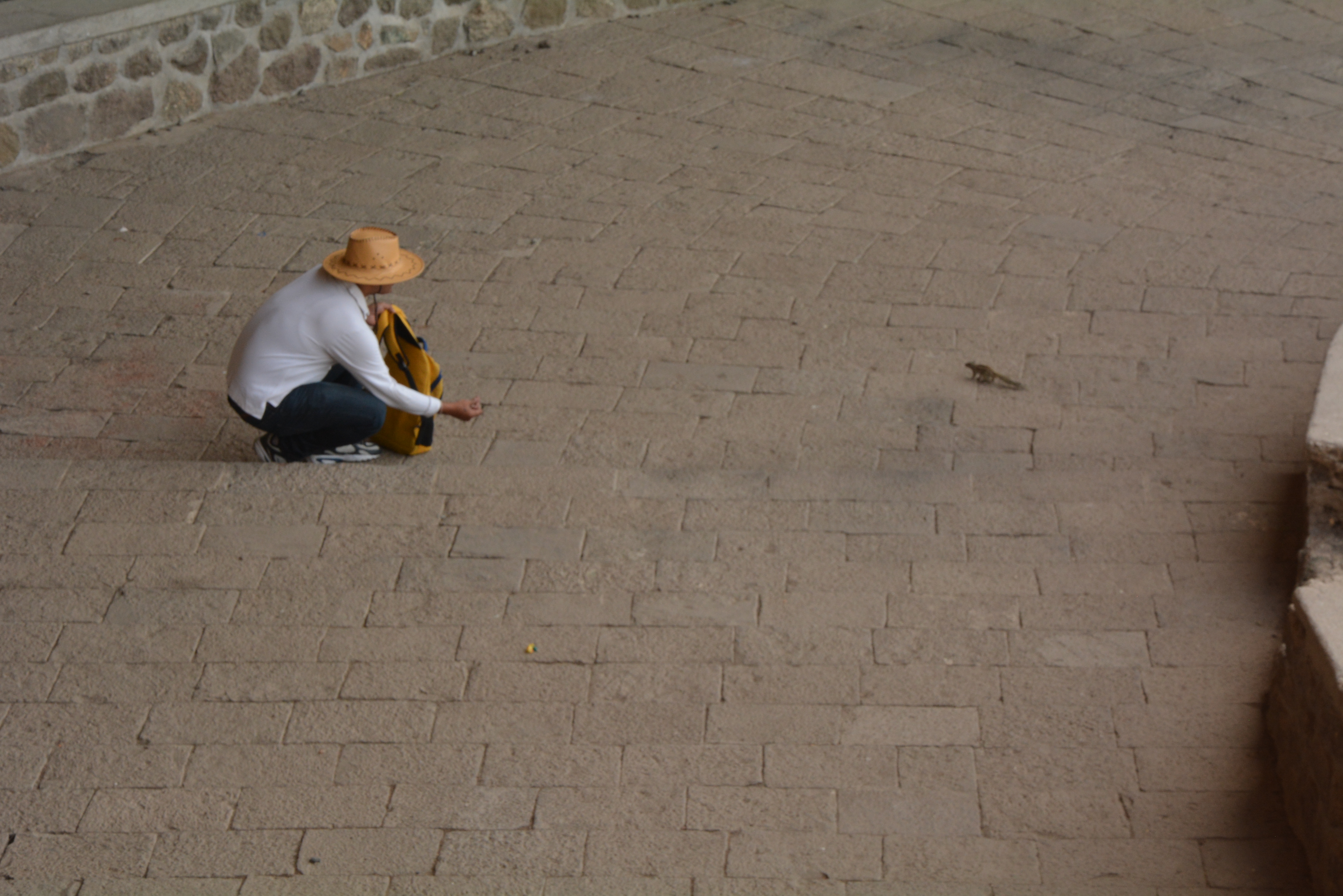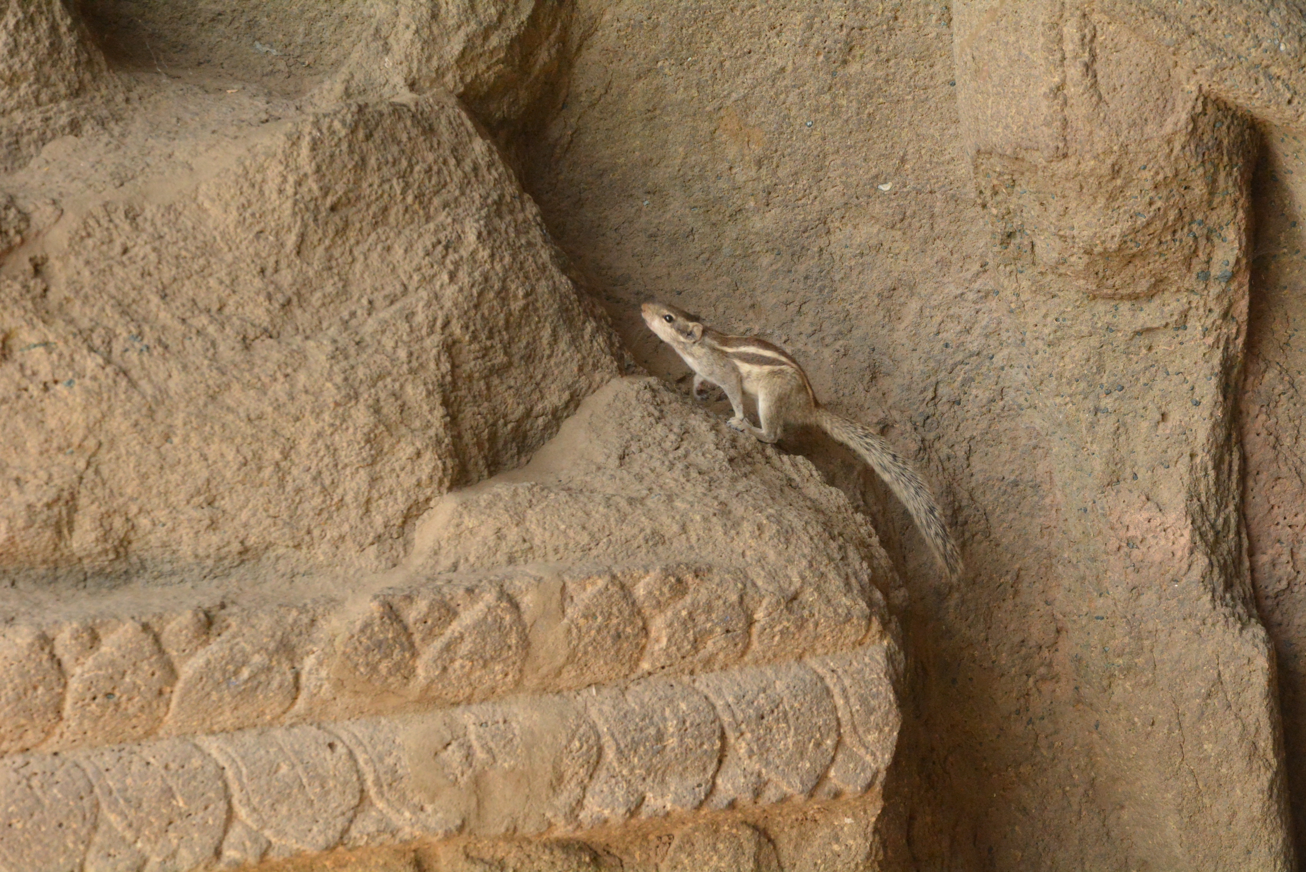 What did he want? Oh, look at him ! Climbing upon the rock sculpture.