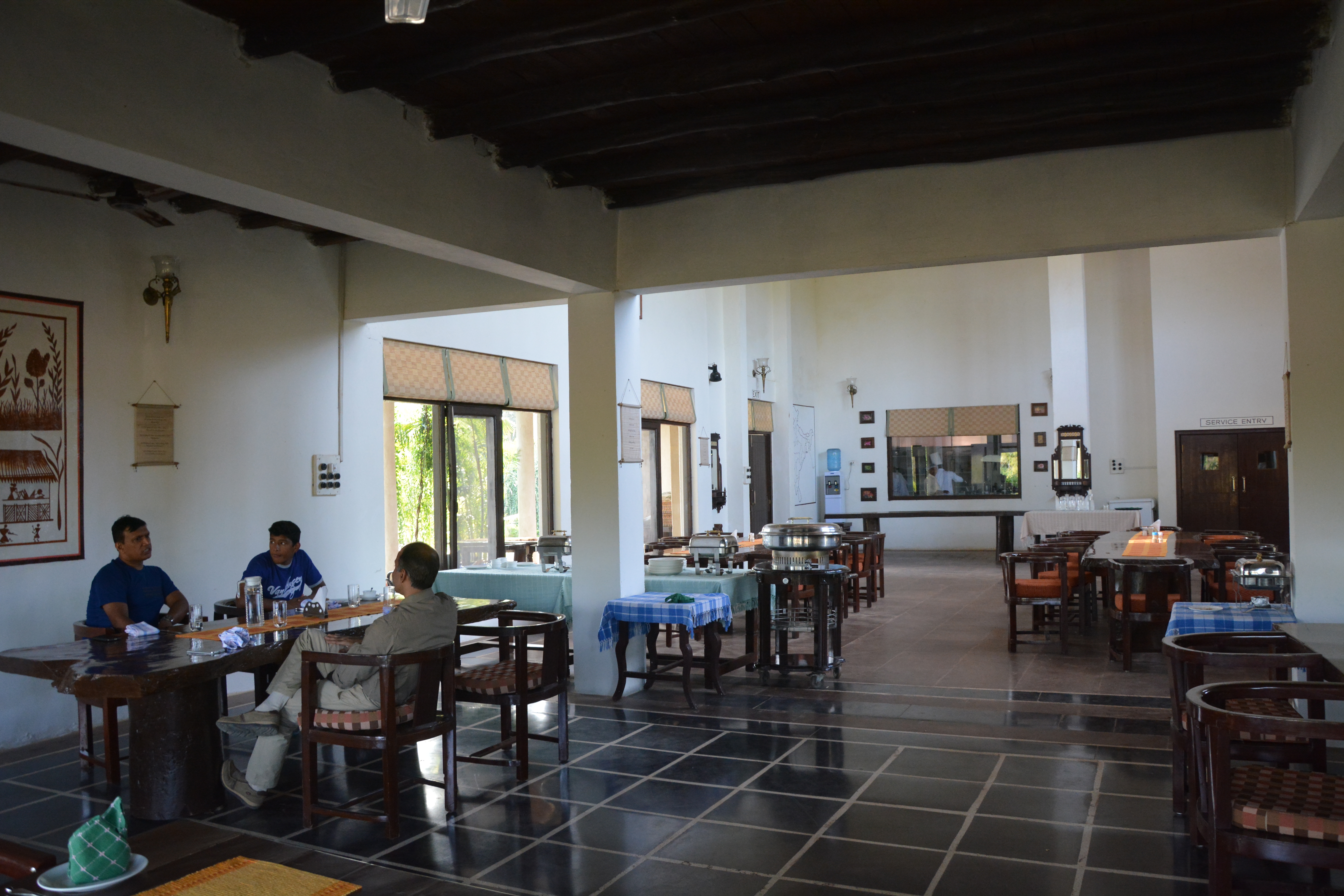 Seeing these pics of big cats our expectations were increased. By the time we refreshed ourselves, the lunch was served. Infact the dinning hall is a big morale booster to the avid traveller as it boasts of large dinning tables and a well laid out sumptuous buffet. There is a swimming pool outside and tribal wall paintings adorning the walls adds to the ambience.