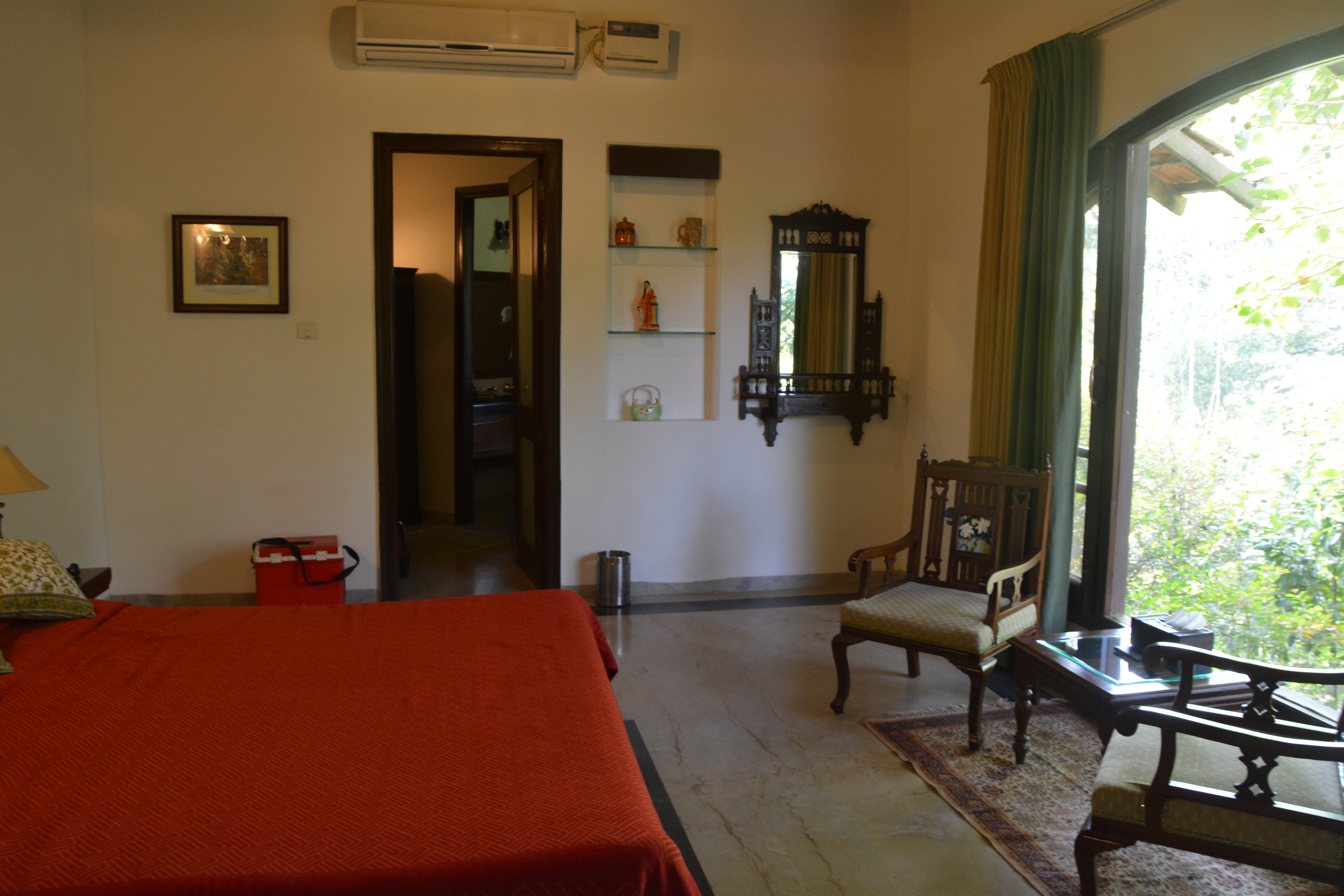 There was backup electricity and hot water supply along with a well stocked mini fridge. The suite that we occupied was on an elevated level and the rooms were displaying the photos of Tigers with small knowledgeable tidbits of information. The accomdation is based on five elements i.e. Pritvi(Earth), jal(water),  agni(fire), akaash( sky) and vaayu( air). We stayed in Prithvi  Suites: With a big Saja tree in the centre of the block, these Suites stand tall, and grand. Each Suite is 900sq. ft. with some unique suite features like spacious sitting area with sofa bed, work area with attached terrace overlooking Maikal hills.