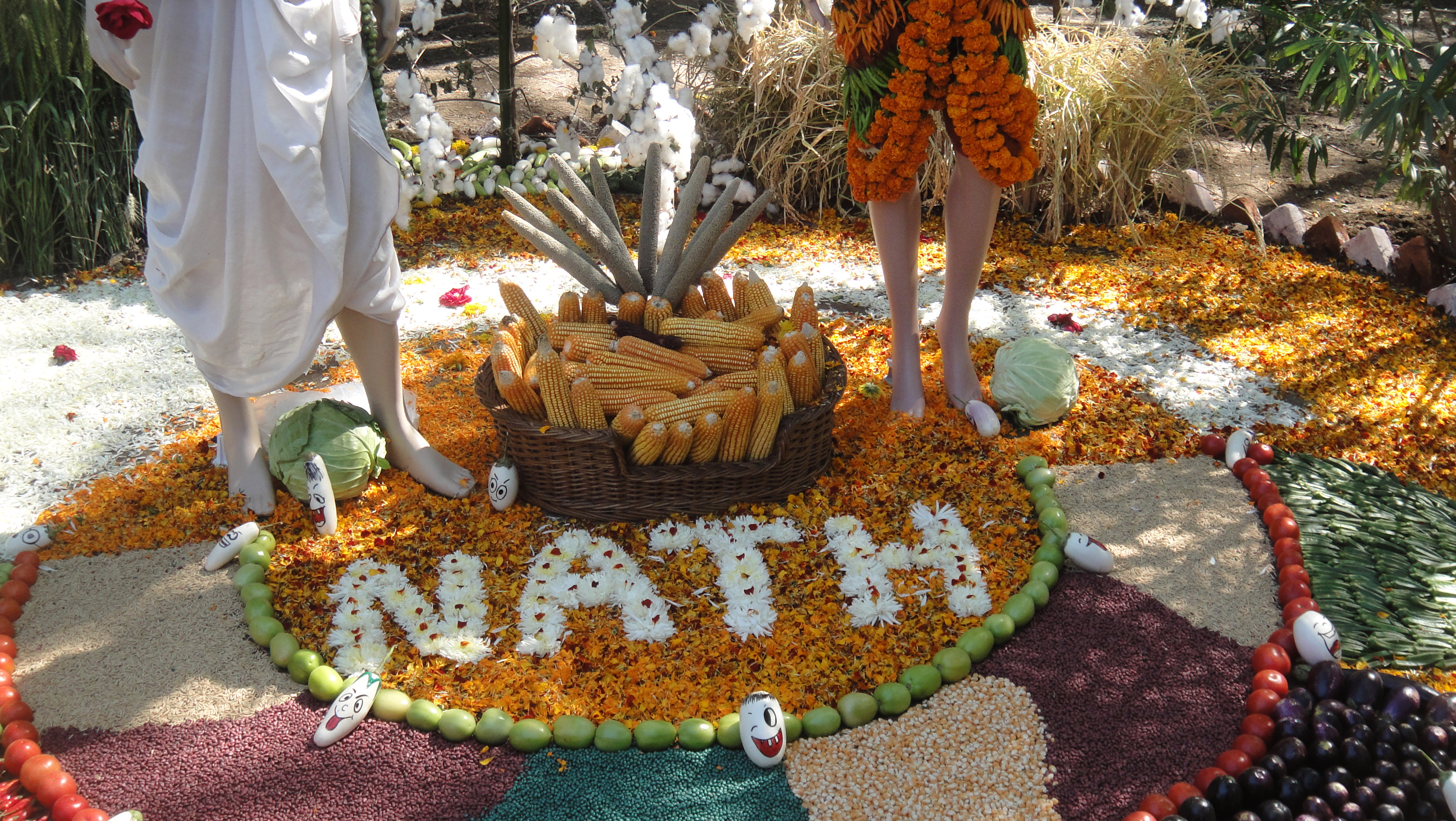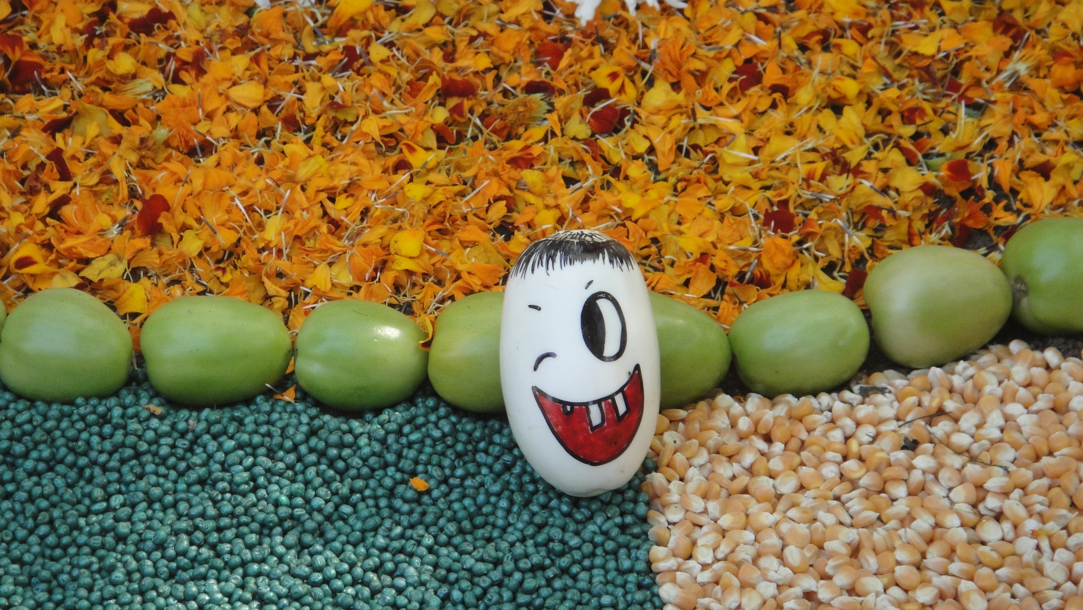 Well it was actually a colorful event ! It was like Roy G. Biv event with lot of fun activities planned based mainly on hurda. At the entrance we saw some very creative floor designs/rangolis made out of vegetables, dry chillies, corns and cereals. I started taking pictures at once which made my son uncomfortable.