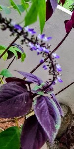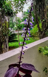 It is the end of the season and my coleus is giving me hints. I am so charmed with these spikes having tiny blue and white flowers. They look so fragile yet pretty. Slowly the leaves will start fading and losing their bright twin colours.