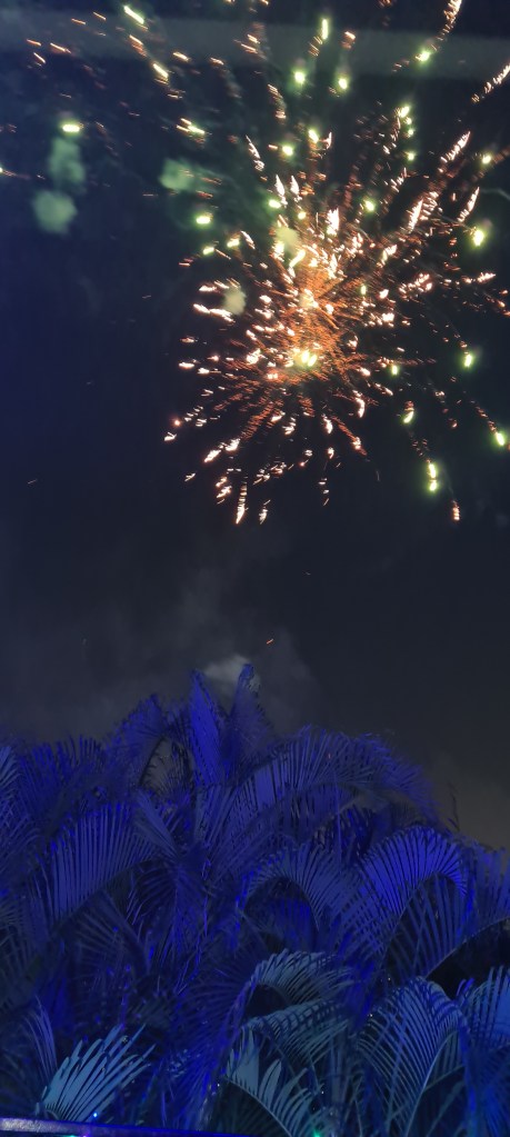 Diwali crackers in action, the leaves looked in blue LED lights
