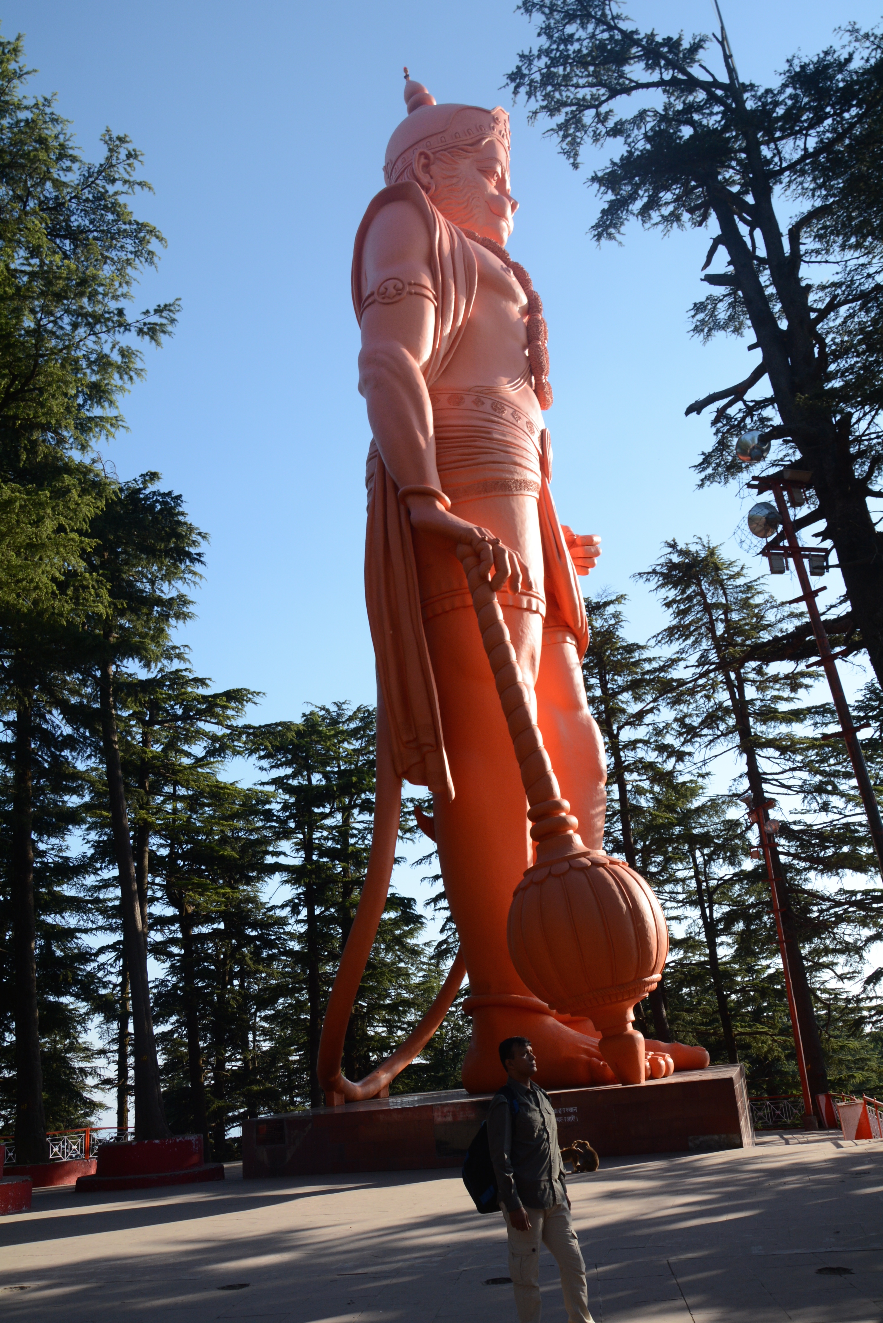 Outside the temple premises 108 feet world tallest, orange statue of Hanuman looms above the treetops and watches Shimla day and night like a protector of the city. The  illuminating statue looks amazing at night.