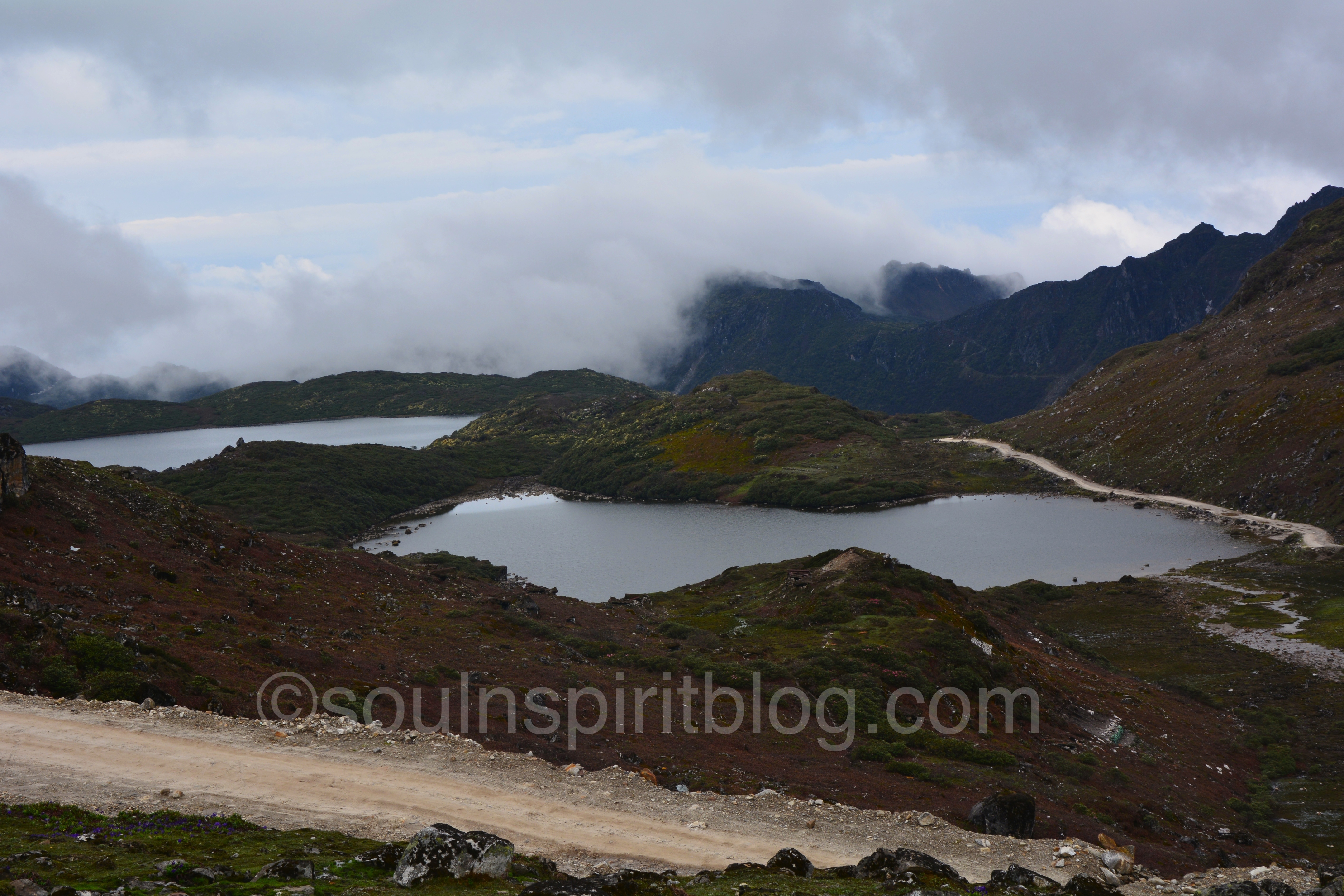 Suddenly we reached at height where we could witness twin lakes. From distance it looked like pristine hearts. I told the driver to stop the vehicle at once so that I could capture the magnificent  lakes. He confirmed that halting the vehicles on turns was not allowed since it was a one way route and we were climbing hills. I didn’t waste time and started clicking to get at least one perfect shot. I was happy to see the results.