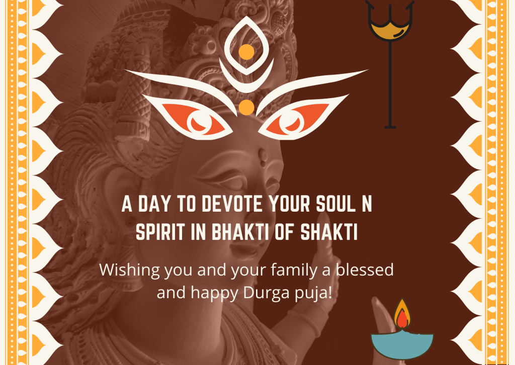 SOULFUL DURGA PUJA WISHES Soul n Spirit 4 years ago Share this: Click to share on X (Opens in new window) X Click to share on Facebook (Opens in new window) Facebook Click to share on Tumblr (Opens in new window) Tumblr Click to share on LinkedIn (Opens in new window) LinkedIn Happy Navratri 2021DateOctober 8, 2021In relation toA photo a daySOULFUL MORNING QUOTEDateOctober 12, 2021In relation toA post a dayFLOWERS OF DURGA POOJADateOctober 13, 2021In relation toA photo a day