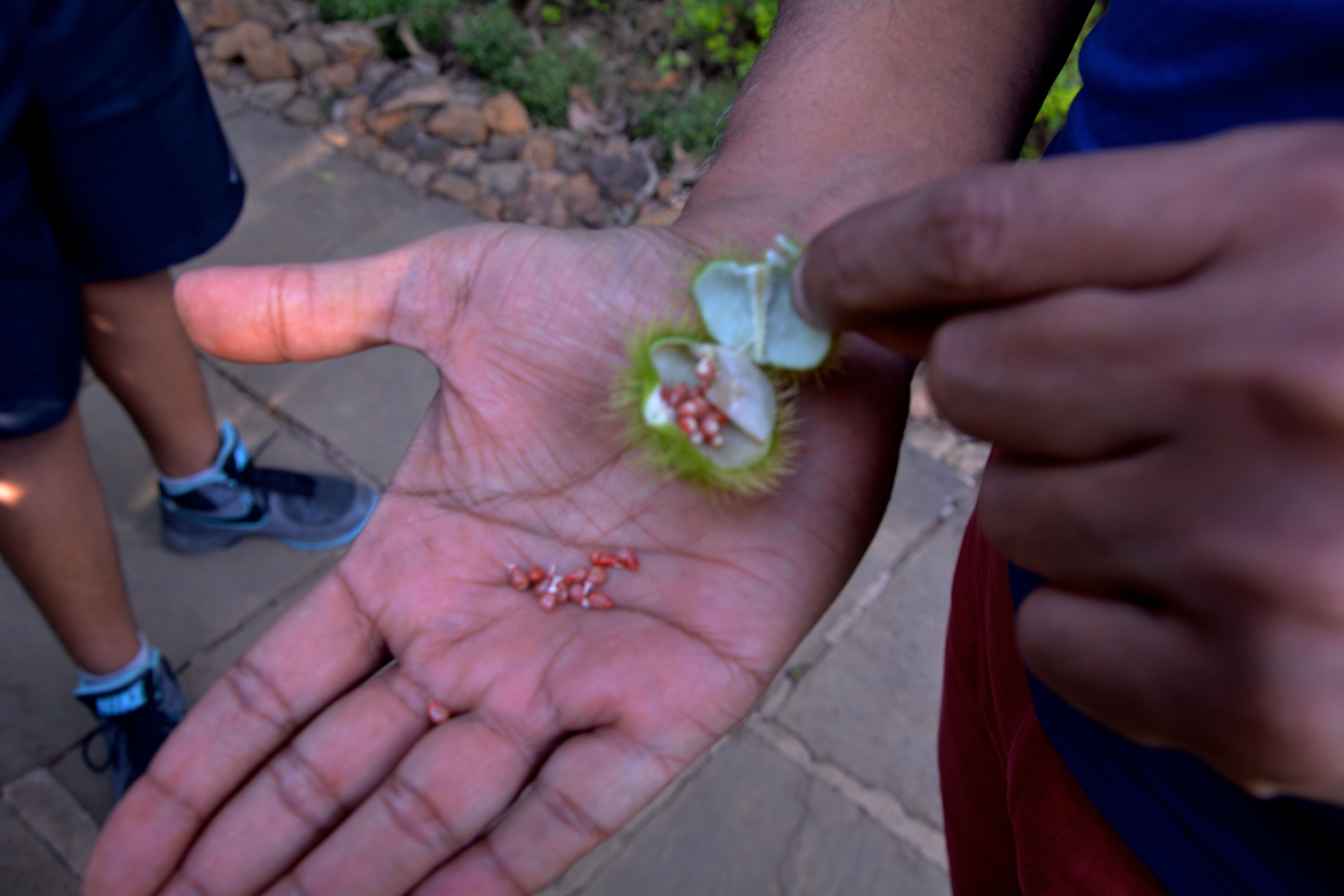 He rubbed the seeds in his hands and it was actually red in color ! Wow ! Natural vermilion or sindoor was so pure and free of dangerous chemicals. No fear of skin reactions, allergies.