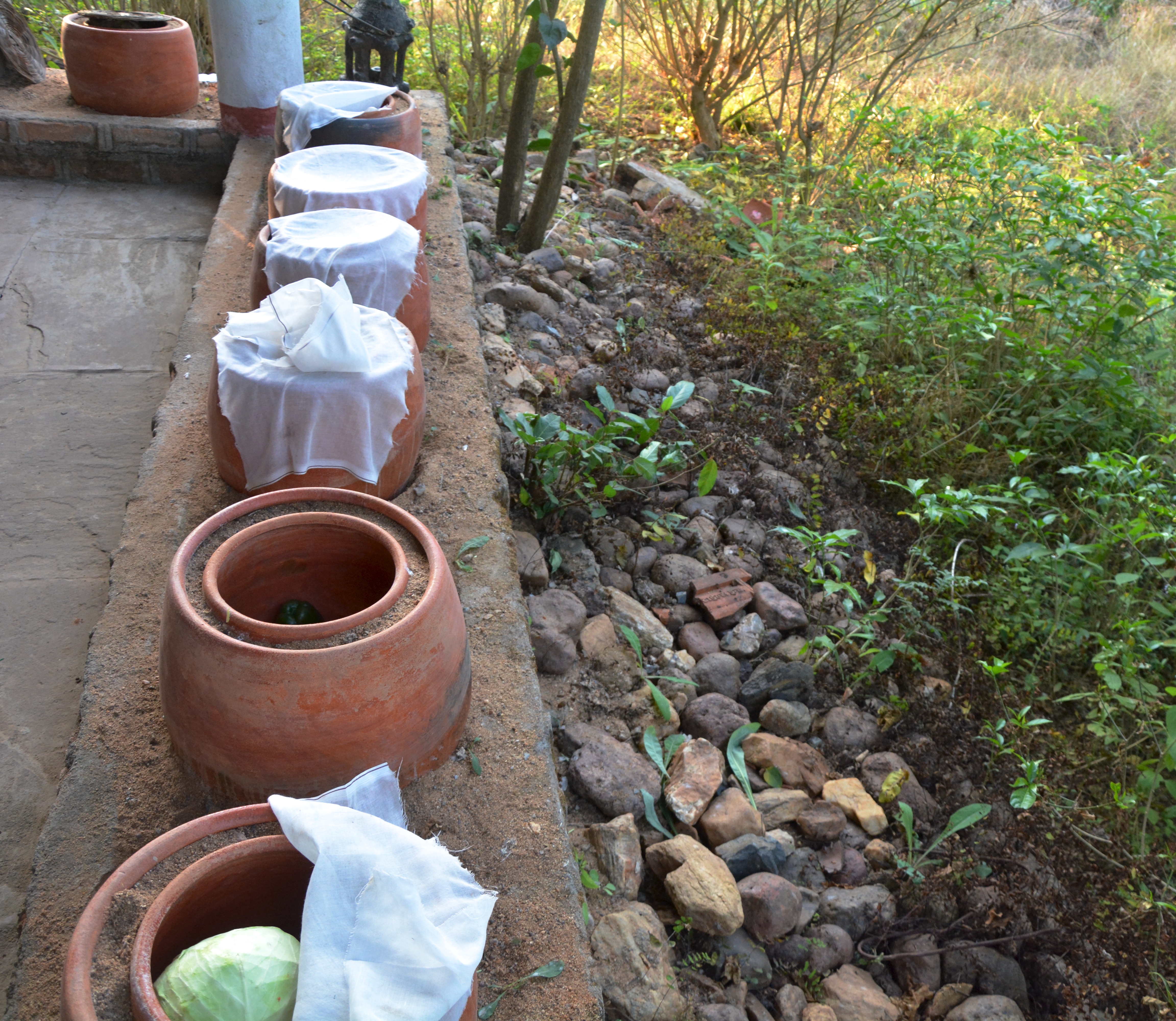We reached there in the afternoon, had lunch, went to room, freshen up to take a view of property. As soon as we reached the organic farm we were delighted to see so many herbs and medicinal plants,a  panacea for many diseases. In one corner we saw these amazing pots, (invented by Nigerian teacher, Mohammed Bah Abba, being used by local villagers) to keep their vegetables fresh for weeks  just like any other electric refrigerator.